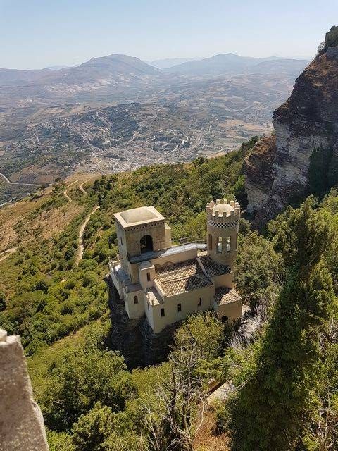Oggi giornata di sole splendida ideale per visitare Erice posta a 750 mt. di altezza da cui si gode uno splendido panorama sulla valle sottostante e sulla città di Trapani e le sue saline.