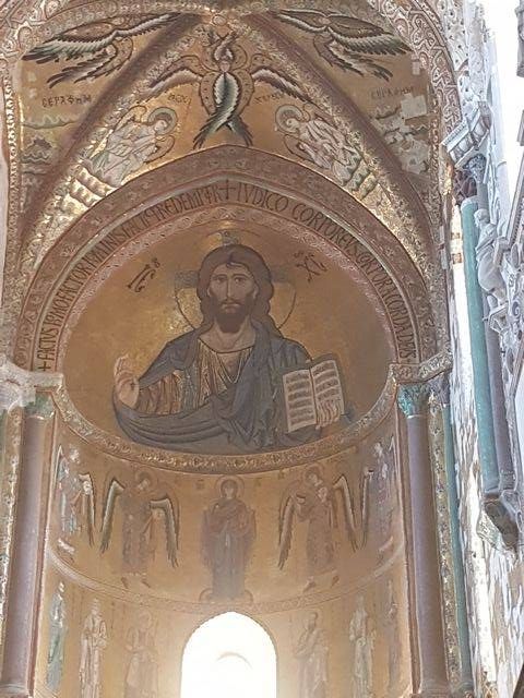 Partiamo di buon mattino perché Palermo dista più di 70 km dal ns. campeggio. Arrivati in città posteggiamo di fianco al famoso mercato di Ballarò. Ci incamminiamo verso il centro, ad un certo punto ci troviamo in una piccola piazza dove sorge “la fontana della vergogna” così chiamata per le sue statue nude. Continuiamo la nostra camminata sino alla Cattedrale. Decidiamo di non entrare, c'è troppa coda, facciamo alcune foto e ci dirigiamo verso il Palazzo dei Normanni. Ci mettiamo in coda facciamo il biglietto ed entriamo. La prima cosa che vediamo è la Cappella Palatina. E’ situata all'interno del palazzo ed è bellissima. I muri e il soffitto sono ricoperti di mosaici dorati, il più bello però è al centro della cupola e raffigura Cristo benedicente. Alle pareti invece ci sono raffigurati i 4 evangelisti e i profeti.
