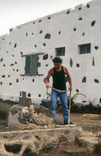 Dopo una visita al mercato di Teguise e alle spiagge della sua costa affollata, ci fermiamo a comprare l'ottimo vino di Lanzarote da un contadino e, poichŽ non è facile trovare acqua per la caravan, otteniamo il suo permesso per rifornirci estraendola a mano da un pozzo. Una curiosità: le viti che producono questo vino, coltivate nella zona della Geria, vengono protette dal caldo secco scavando buche nella lava e ricoprendo il terreno di cenere per trattenere l'umidità notturna. Il nostro viaggio prosegue. Il 21 luglio siamo tra le lave vulcaniche del parco di Timanfaya; poi alle saline di Janubio, dalla nera spiaggia di polvere lavica; a Los Hervideros, balconi di pietra opera di Manrique da cui ascoltare i gorgoglii del mare contro le rocce; infine a El Golfo, piccolo paese dalla bella spiaggia scura, e alle calette di punta Papagayo. L'indomani, Arrecife è la nostra meta iniziale prima di tornare a Teguise, con la chiesa di San Miguel e il castello di Guanapay sulla cima del vulcano. Toccate velocemente Puerto del Carmen e Playa Blanca, facciamo ritorno a Fuerteventura, tappa forzata per arrivare sull'isola di Tenerife, che raggiungiamo ancora una volta via mare.
