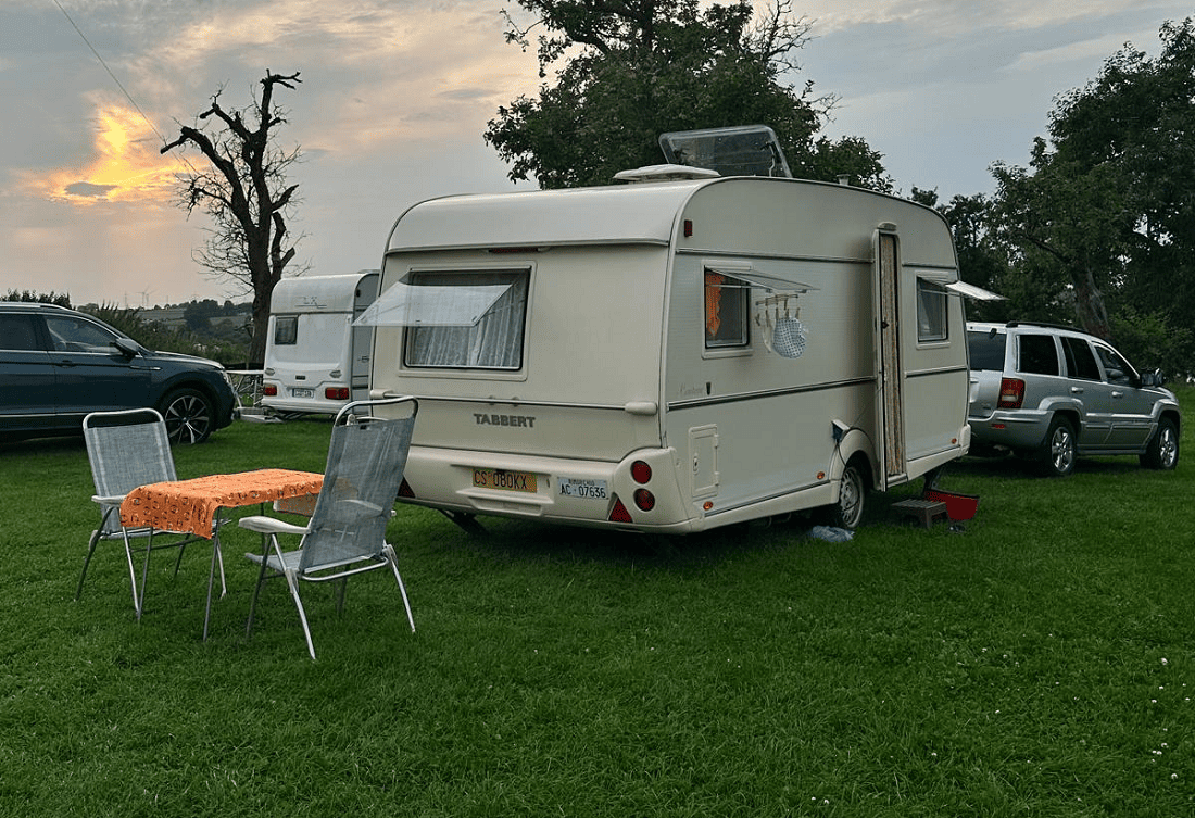 Ceniamo all’interno delle roulotte, ultima notte di vacanza.